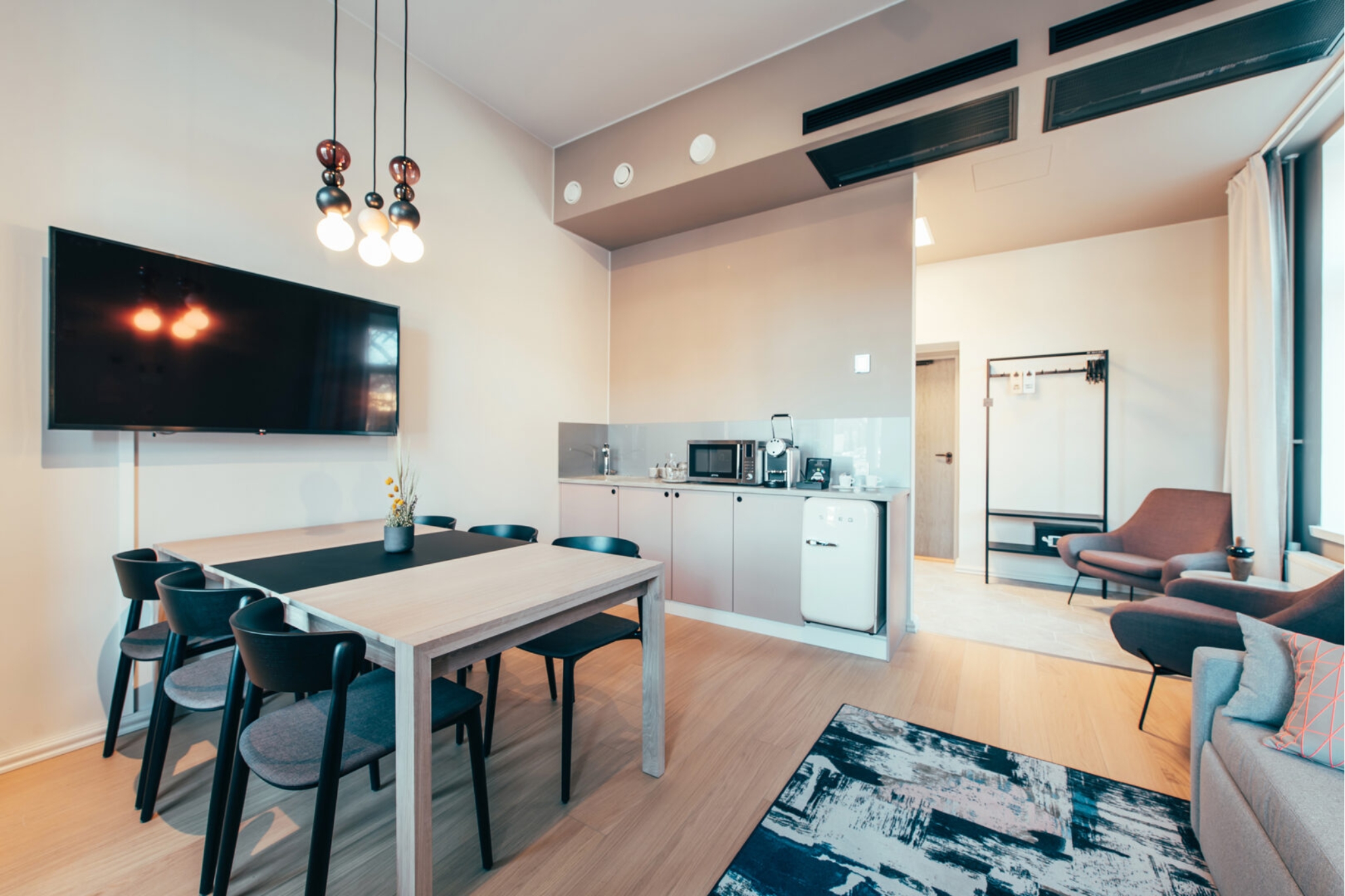 Rakennus on varattavissa kokonaisuudessaan yksityiskäyttöön. Vanhasta konttorista löytyy 17 premium-hotellihuonetta: